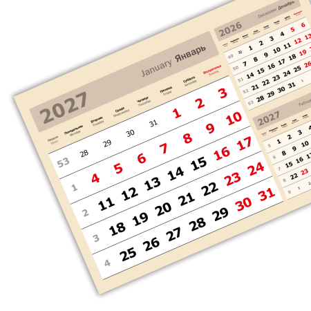Календарные блоки Полимат — 232 готовых календарных блока на 2027 и 2026 год. 2 вида бумаги, 10 типоразмеров, 28 цветовых решений. Квартальные блоки Полимат способны удовлетворить любые вкусы!