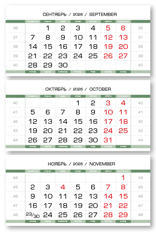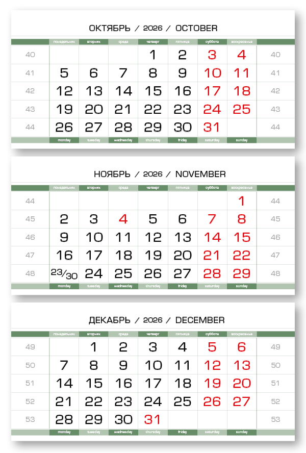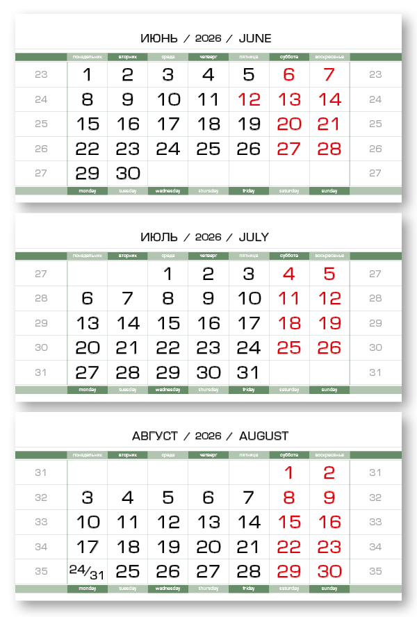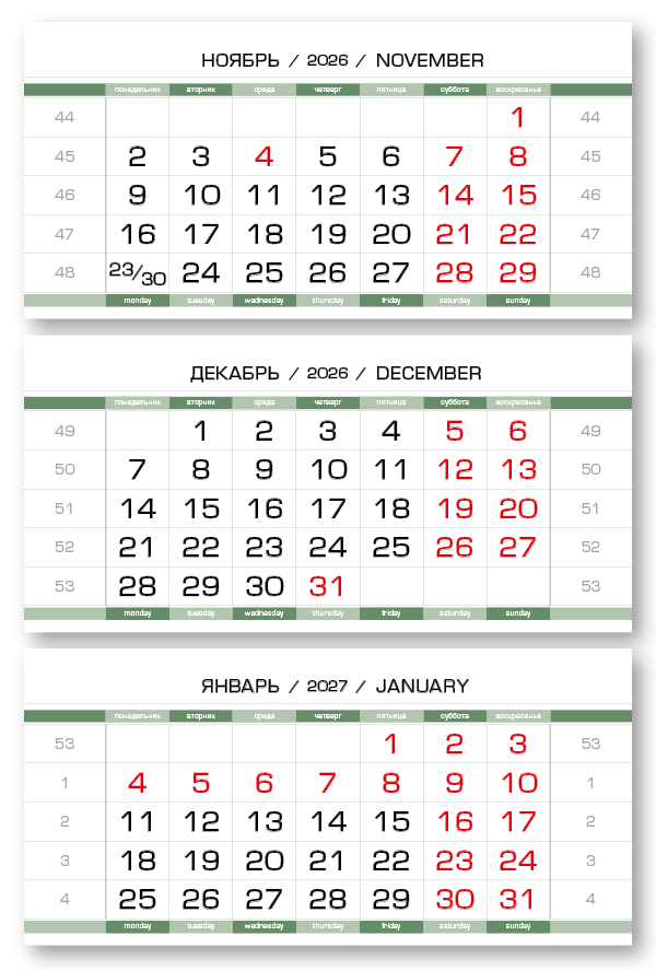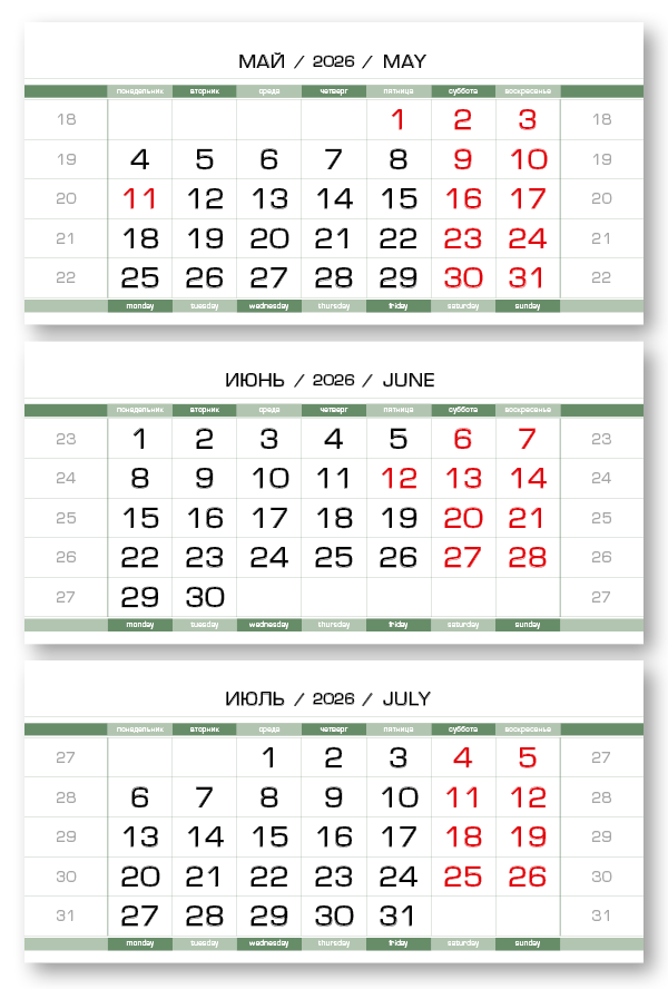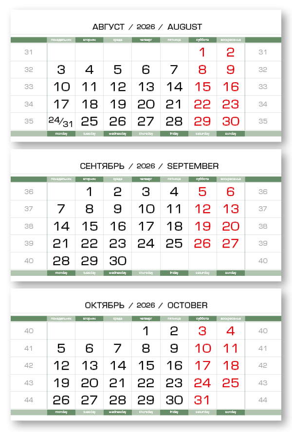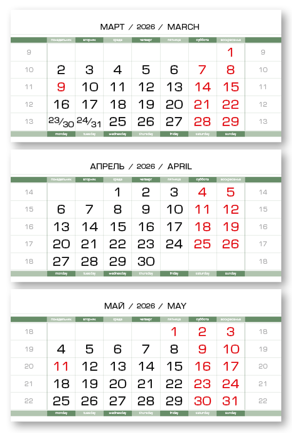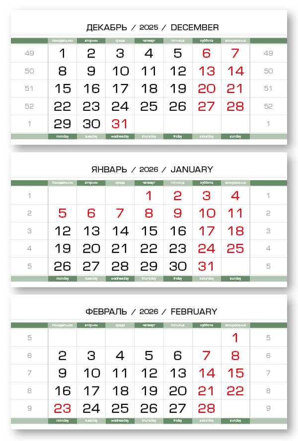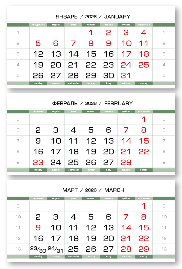 2026 - ПРОИЗВОДСТВЕННЫЕ-80 мини 3-сп (3 х 297*145) зеленовато-белый