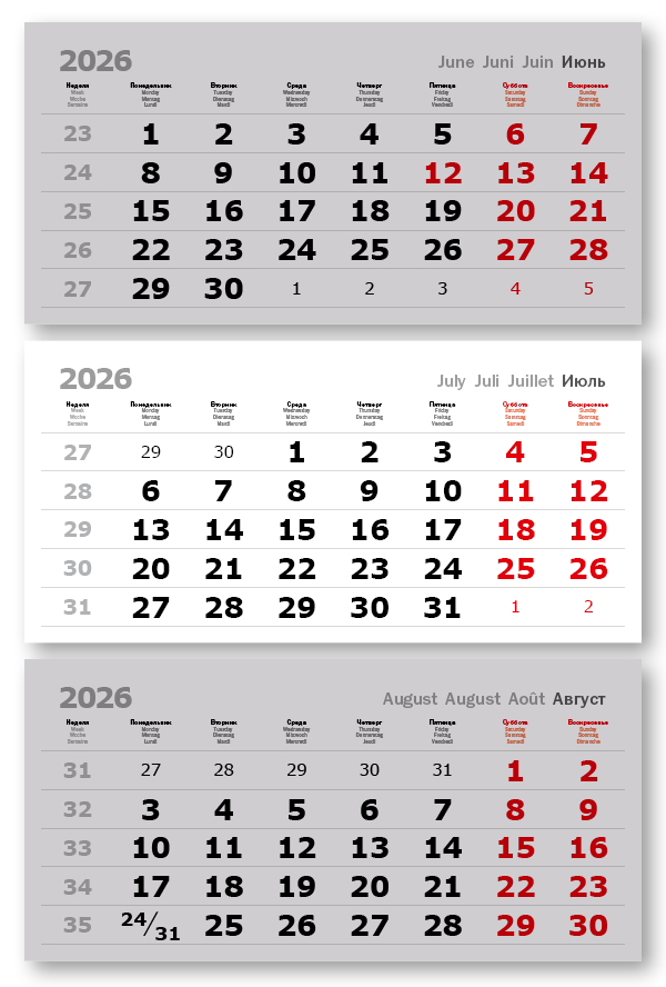 2026 - ВЕРДАНА офсет мини 3-сп (3 х 297*145) серый